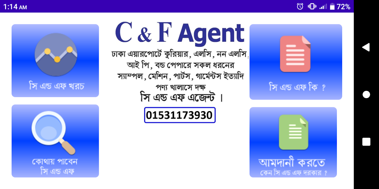 আমদানি বা রপ্তানি করতে অবশ্যই সি এন্ড এফ এজেন্ট দরকার হয়। বিস্তারিত রয়েছে এ্যাপে