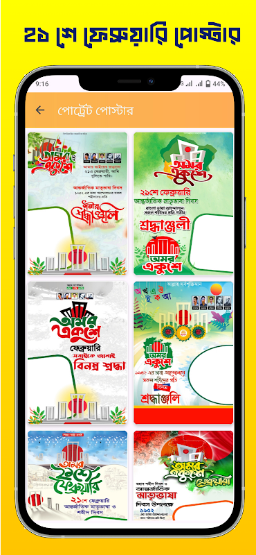 বাংলাদেশে প্রতি বছর ২১শে ফেব্রুয়ারি বিশেষভাবে এই দিবসটি পালিত হয়। তাই আপনাদের কথা চিন্তা করে ২১শে ফেব্রুয়ারির পোস্টারের একটি অ্যাপ তৈরি করেছি। এই অ্যাপ দিয়ে আপনি সহজেই ২১ শে ফেব্রুয়ারির পোস্টার নিজের ছবিতে যুক্ত করতে পারবেন। বিভিন্ন ডিজাইন এর পোস্টার দিয়ে ২১শে ফেব্রুয়ারির পোস্টার অ্যাপ তৈরি করেছি। আশা করি আপনারা এই অ্যাপটি খুব পছন্দ করবেন।