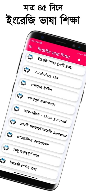 ১৫ টি গুরুত্ত্বপূর্ণ ক্লাস নিয়ে সুসজ্জিত ইংর েজি ভাষা শেখার অ্যাপ। বর্তমান যুগে যেখানে ইংরেজি ভাষা ছাড়া কোনো কি ছু চিন্তিই করা যায় না যেমন পড়াশোনা, সকল ধরনের ধরনের াকরি সব জায়গায়ই ইংরেজিতে ভালো দক্ষতা এখন প্র ধান বিষয়, বিশেষ করে সম্পূর্ন ইংরেজিতে কথা বলা ও Englisch gesprochen এর দক্ষতা। ইংলিশ ভাষা শিখা বা ইংরেজিতে অনর্গল কথা বলা এখন প্রায় প্রত্যেকের জন্য প্রয়োজন।