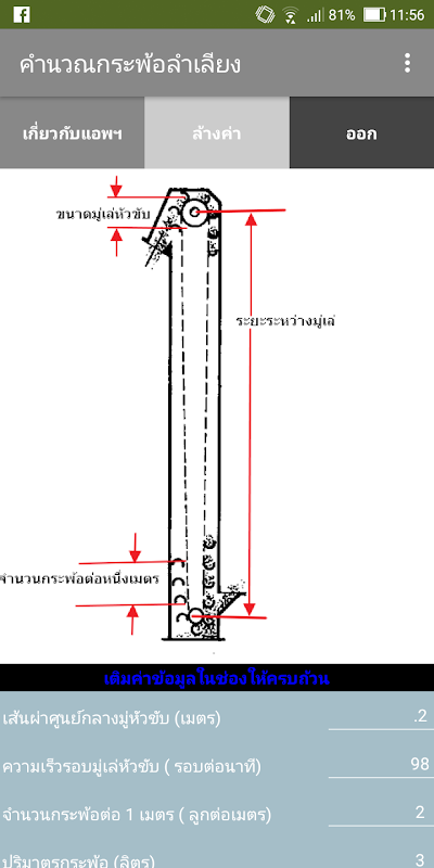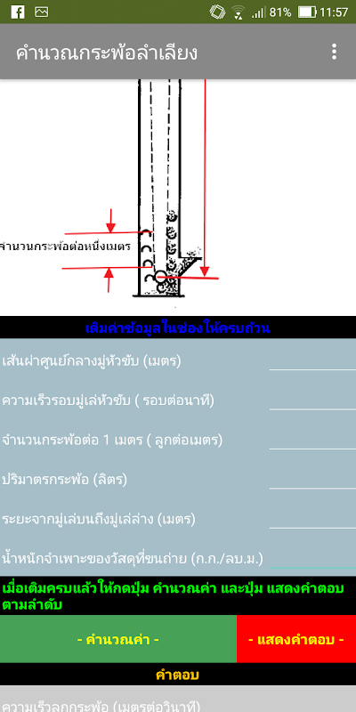 Anwendung zur Berechnung des Wertes der Fördererauslegung Thai-Stil