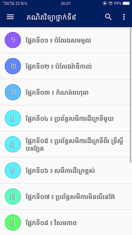កម្មវិធីនេះត្រូវបានដកស្រង់ចេញពីសៀវភៅ គណិតវិទ្យាថ្នាក់ទី៩ ១០០១លំហាត់ត្រៀមប្រលងសិស្សពូកែ ហើយត្រូវបានរៀបចំជាផ្នែកៗ ងាយស្រួលដល់អ្នកដែលប្រើប្រាស់ស្មាតហ្វូន។