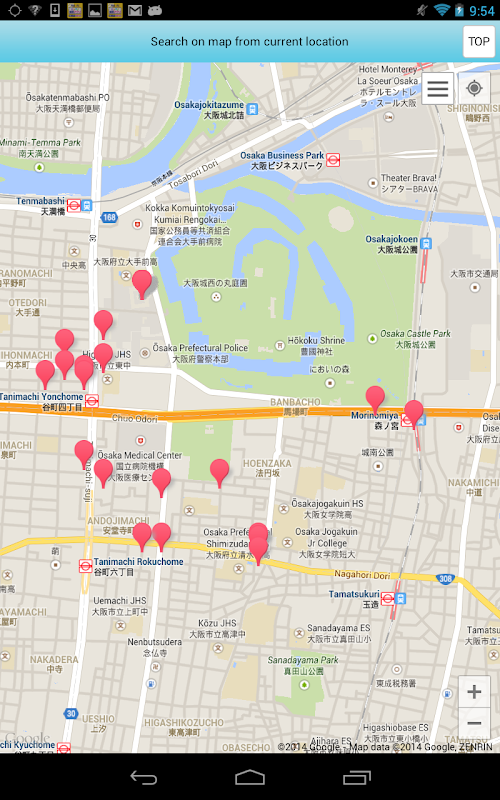 Sie können für Bereiche auf der Karte suchen, basierend auf der aktuellen Position.