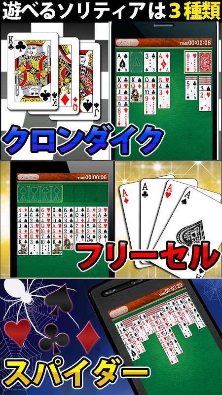 ■遊べるソリティアは全3種類!