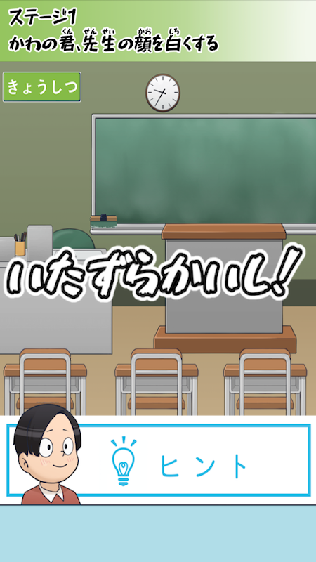 ステージに配置されたアイテムを使って、いたずらを成功させましょう。
