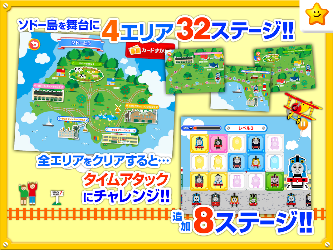 ・きかんしゃトーマスが活躍する"ソドー島"を舞台に、ショートストーリーを見ながらトーマスと一緒にパズルに挑戦します。