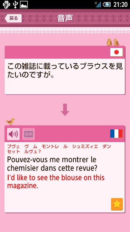 3.日本語と現地語を対比しながら、スピーカーボタンで音声が聞けます。