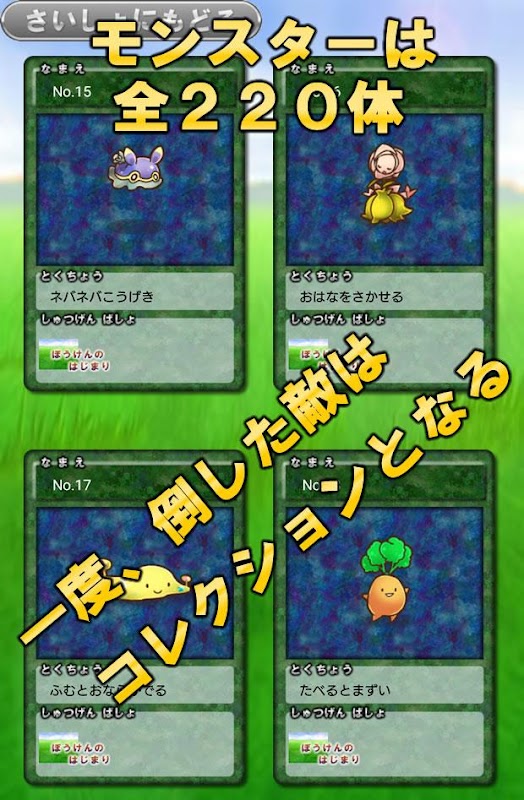 レアモンスターを含めて全部で220モンスター、コンプリートを目指そう!