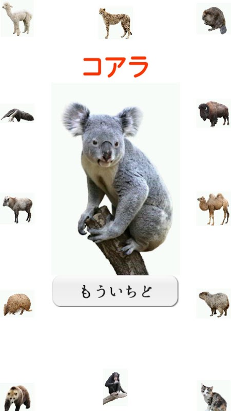 五十音のカードをならべて、動物の名前を作って遊ぶアプリです。