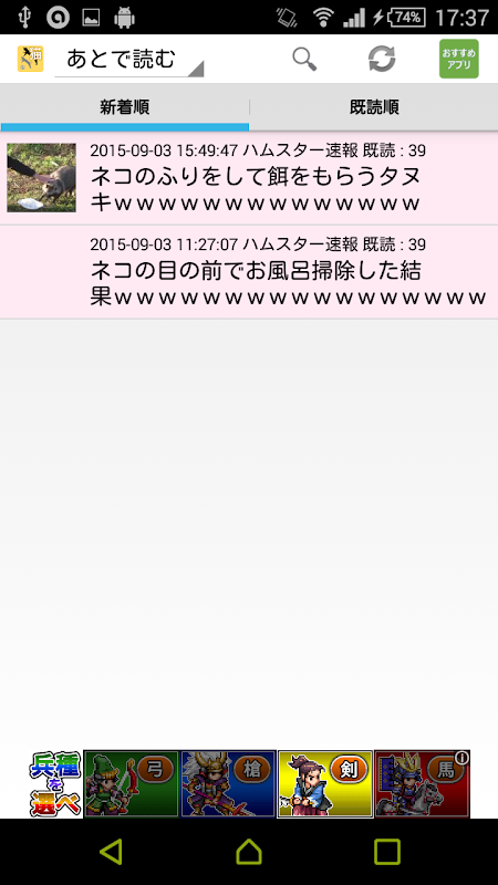 1.すぐ読む:、電波が弱くても、圏外、オフラインでも、2chまとめサイトの記事読み込み時間はなし