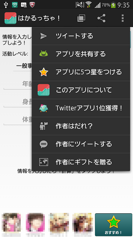 Twitterアプリランキング1位獲得「tweecha」の中の人が作った健康体重や美容体重、理想体型が簡単にわかる「はかるっちゃ!」です!