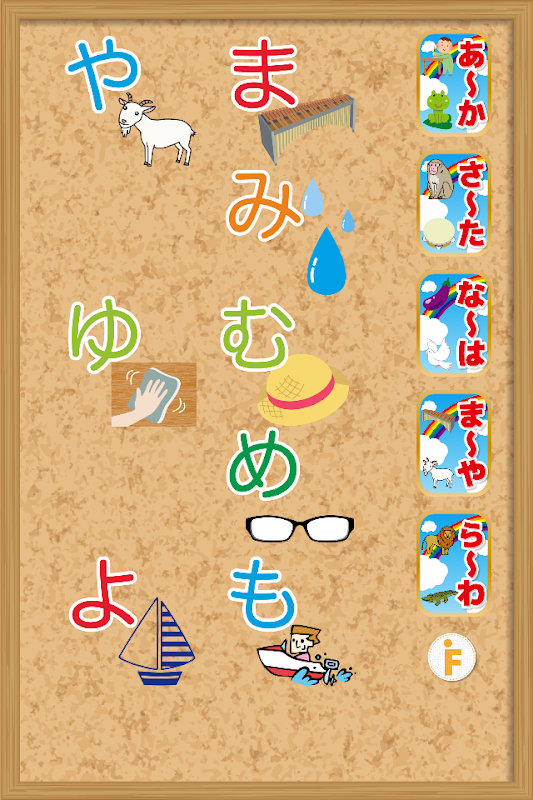 ひらがなをタッチすると、「あ あかちゃん」や「い いぬ」とおしゃべりをしながら動いて楽しみながら五十音を覚えられる子供・赤ちゃん・幼児向け知育アプリです。