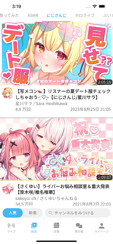 - „Suchen“-Funktion, mit der Sie gleichzeitig nach Videos und Artikeln interessanter VTuber suchen können
