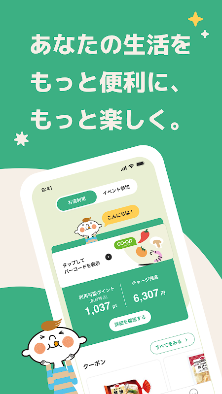 ●Durch die Registrierung Ihrer Co-op-Punktkarteninformationen können Sie Ihr E-Geld-Guthaben, Ihren Punkteverlauf, Ihren Gebührenverlauf usw. überprüfen.