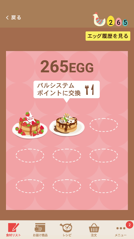 Für jeweils 100 Eier können Sie Artikel wie Pfannkuchen erhalten. (Wenn Sie 1000 Eier oder mehr sammeln, ändert sich das Thema des Gegenstands.)