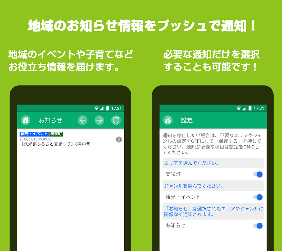 暮らしに便利な情報をプッシュ通知でお知らせします。