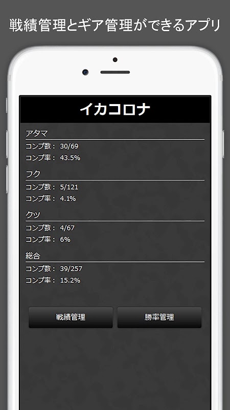 ゲームルール、ブキ、勝利・敗北などをすぐに記録できます。記録したデータは、一覧で閲覧可能です。その他に簡易勝率管理として3つご用意しています。簡易勝率管理はフェスとかに使うと便利だと思います。