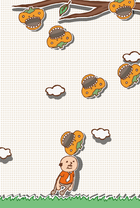 大人気節電アプリ「ぼく、スマホ」のおじさんが、ついにゲームになって登場!その名も「カキおじ」落ちてくる人食い柿をよけながら拾って、最高記録を目指そう!