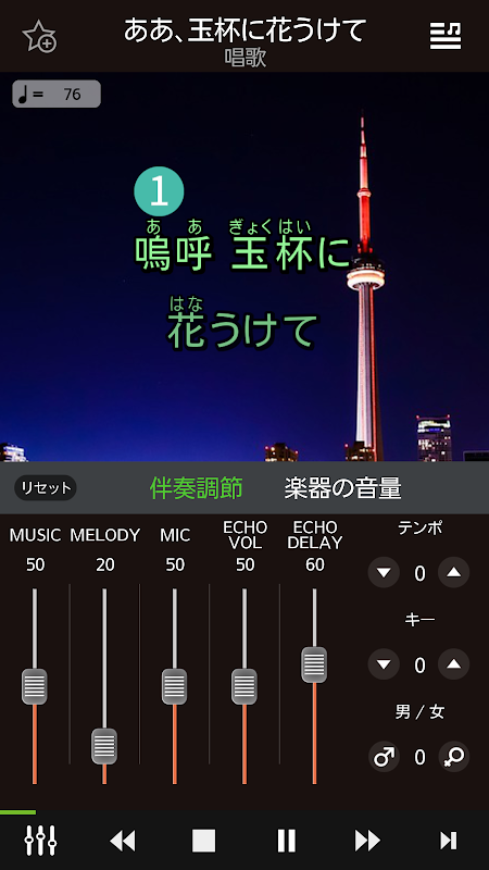 Die Karaoke-App "ONSTAGE" verwendet die MIDI-Methode, sodass Sie mehr als 200 Songs mit nur der Datenmenge genießen können, die zum Abspielen einer einzelnen MP3-Datei verwendet wird. Genießen Sie "ONSTAGE" überall und jederzeit, ohne sich Gedanken über Daten machen zu müssen.