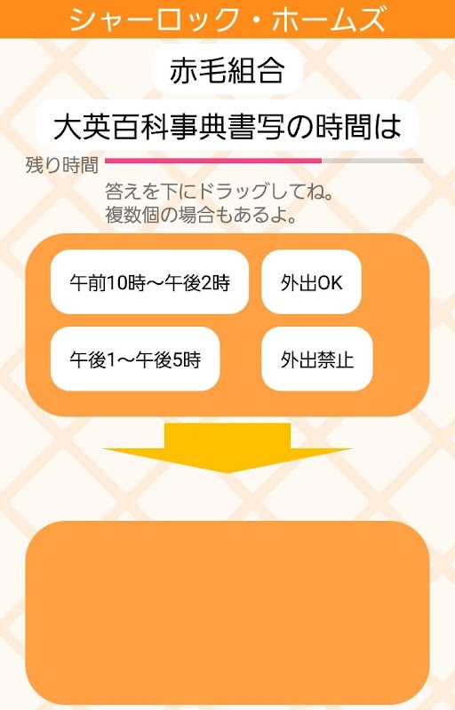 あのシャーロック・ホームズシリーズ名作中の名作「赤毛組合」がクイズゲームになりました。新感覚のクイズゲーム!的確な判断力、動作、スピードが要求されます。