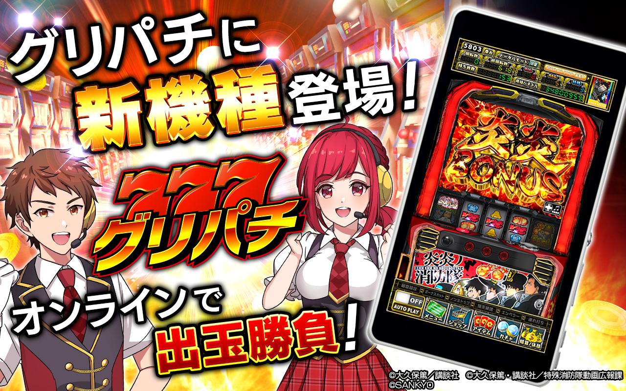Der Comic hat sich weltweit über 20 Millionen Mal verkauft (Stand: 28. Juni 2024), und die dritte Staffel des TV-Animes wurde ebenfalls angekündigt. Genießen Sie die Smartphone-App für den Pachislot-Automaten, die mit dem beliebten Fortsetzungswerk „Fire Force“ im „Weekly Shonen Magazine“ verknüpft ist, in einer virtuellen Halle!