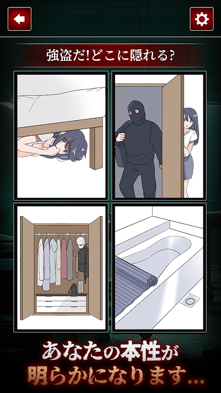 „Psychopath Diagnosis“ ist eine Anwendung, mit der Sie die Diagnose einfach und intuitiv genießen können, da Sie mit der Diagnose fortfahren können, indem Sie einfach auf die Illustration tippen!