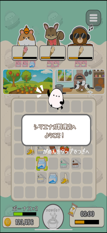 Tippen Sie, um Zutaten zu kombinieren, immer mehr Essen zu kochen und es den süßen Tieren zu servieren!