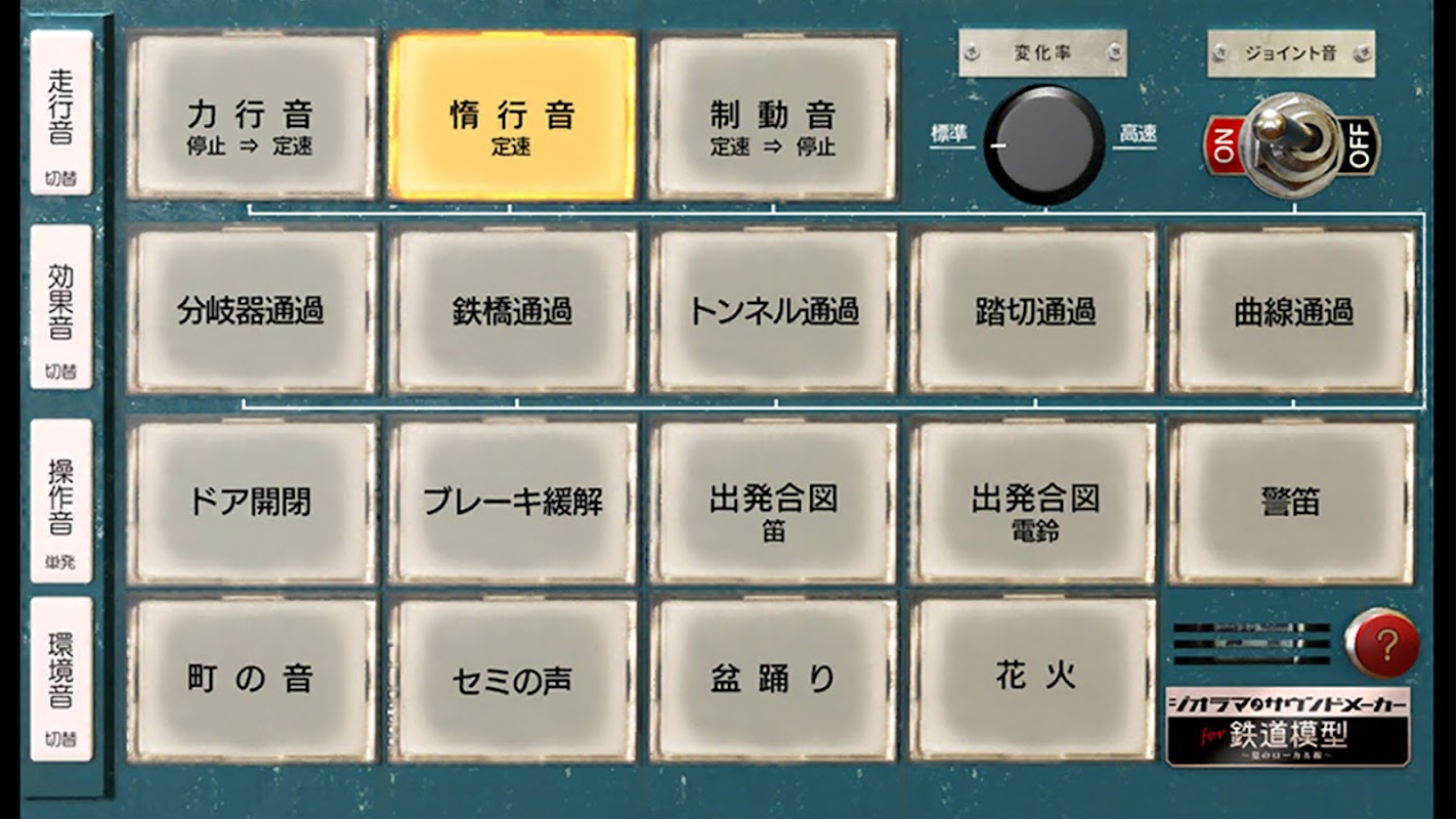 ※効果音も変化率ツマミと連動して音の走行速度感を変えることが