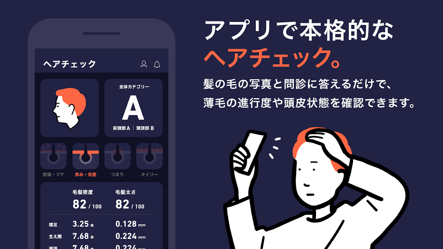 ・スマホのカメラを使い、自分の頭髪を撮影、アップロードすると、