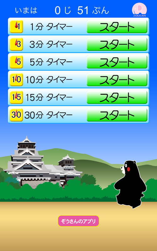 熊本県PRキャラクター「くまモン」の簡単タイマーです。