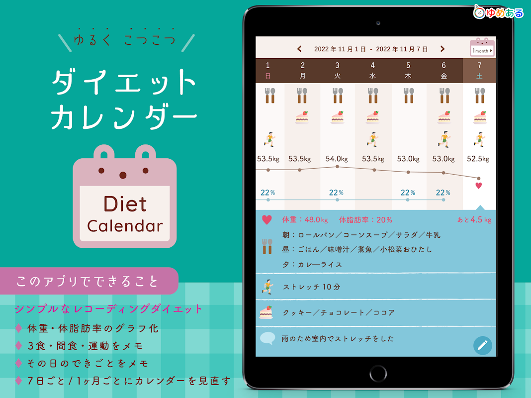 ◆Memo von 3 Mahlzeiten, Snacks und Bewegung
