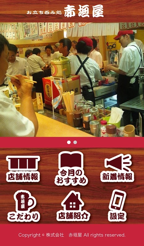 『立飲み居酒屋 赤垣屋』の公式アプリです。