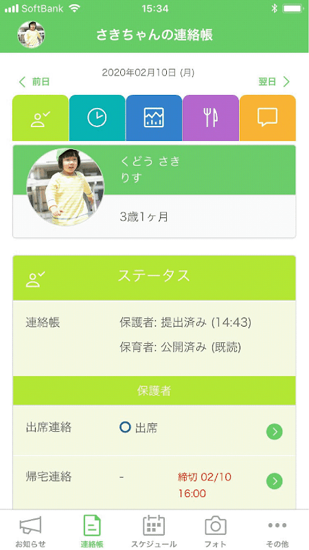 Nicht nur registrieren, sondern auch Fotos von den Snacks, dem Mittagessen usw. des Tages machen und diese mit Ihrer Familie teilen.