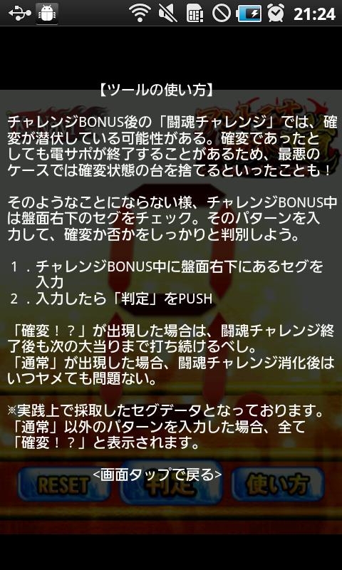 パチンコ「CRアントニオ猪木という名のパチンコ機道」の確変判別アプリです。