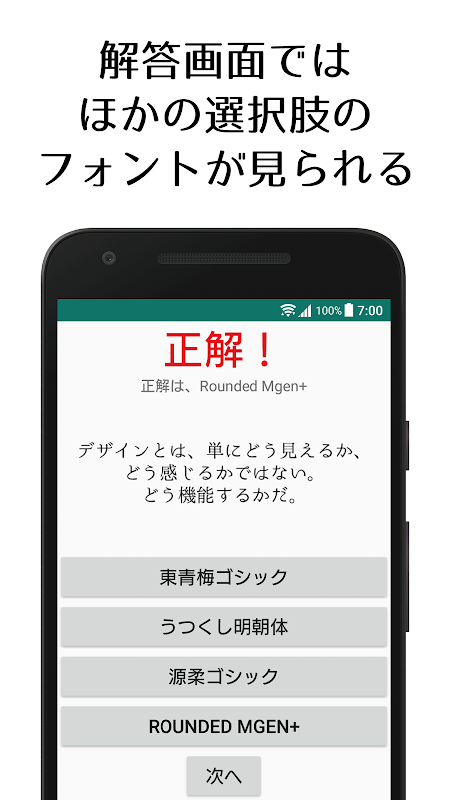 解答画面では、ほかの選択肢のフォントを見て確認することができるよ。
