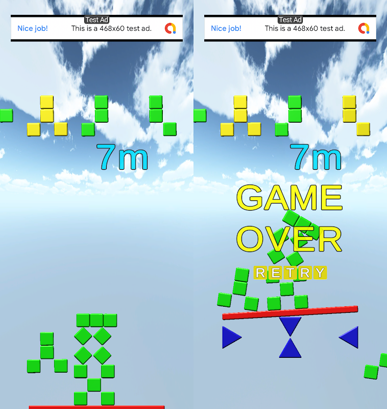 Das Spiel ist beendet, wenn Blöcke vom Tisch fallen