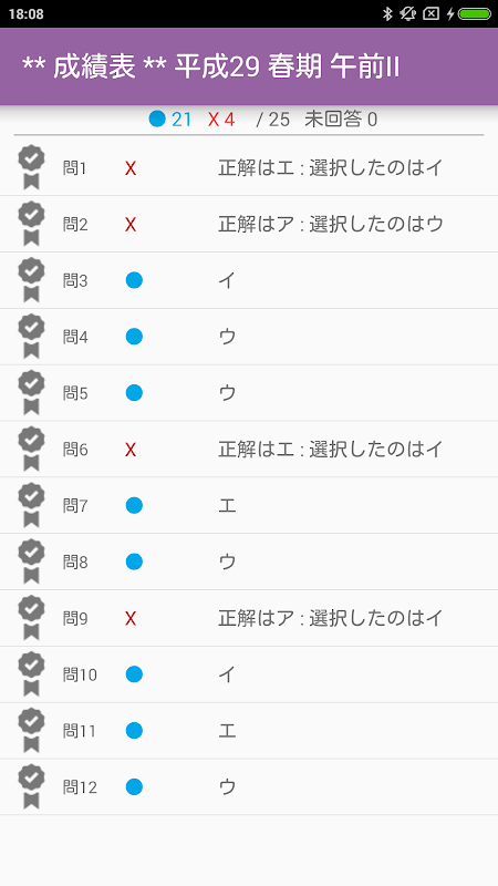 - 気になる問題、間違った問題にチェックをつけておけます。