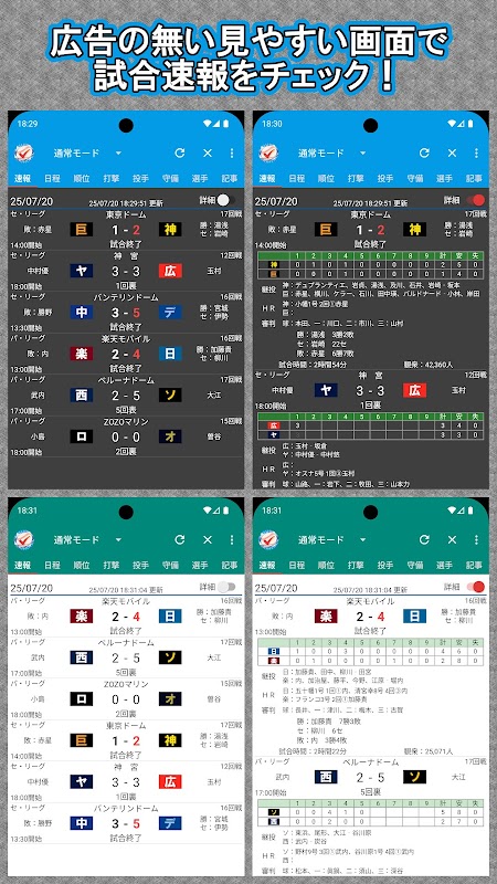 ・Aktivieren Sie den Schalter „Details“, um detaillierte Informationen wie Batterie- und Homeruns anzuzeigen.