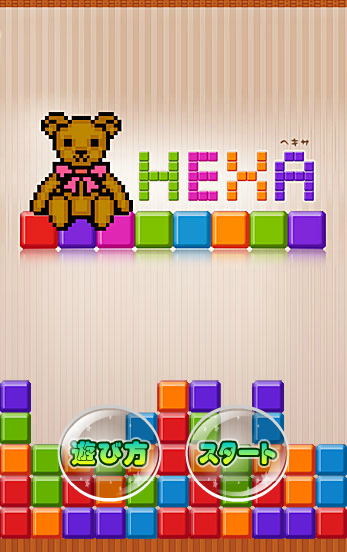 落ちてくるブロックを色ごと縦横斜めに並べるヘキサ☆ブロックが積みあがってくるとイライラ度が増しちゃうのでなるべく早く適格に消していこう!