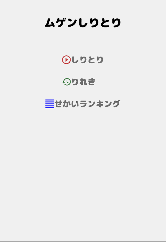 ひとりでしりとり。さみしくなったらSNS連携、ランキングへの参加もできる! しりとりが続くように忖度をしてランキング上位を目指そう!