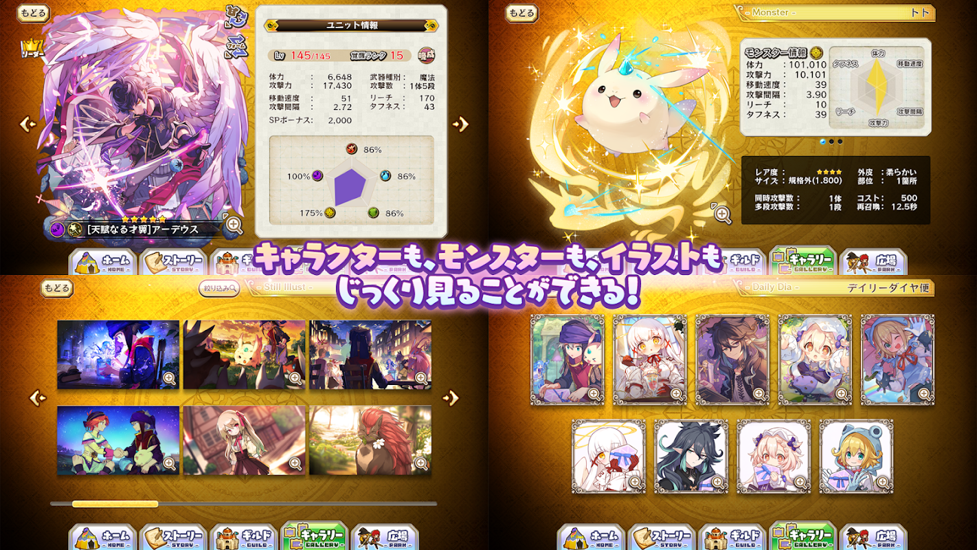 Zusätzlich zu den Einheiten- und Monsterdaten können Sie in der Galerie auch viele im Spiel verwendete Illustrationen ansehen!