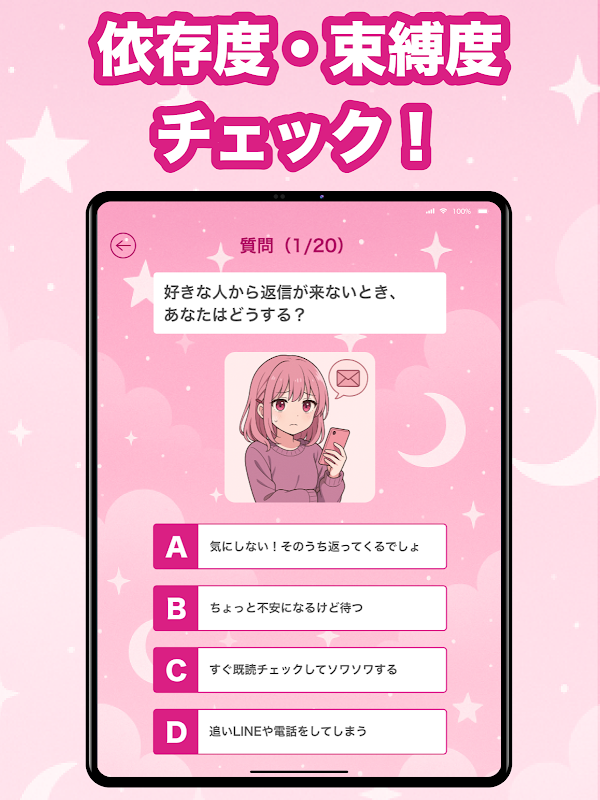 Beliebte Menhera-Level-Diagnose! Eine Persönlichkeitsdiagnose-App, die Ihren Persönlichkeitstyp, Ihren Liebessucht-Level und mehr untersucht! KI diagnostiziert Ihren Depressionsgrad mit einem kostenlosen psychologischen Test! Sie können auch Ihre Liebestendenzen, Analysen und Ratschläge herausfinden!