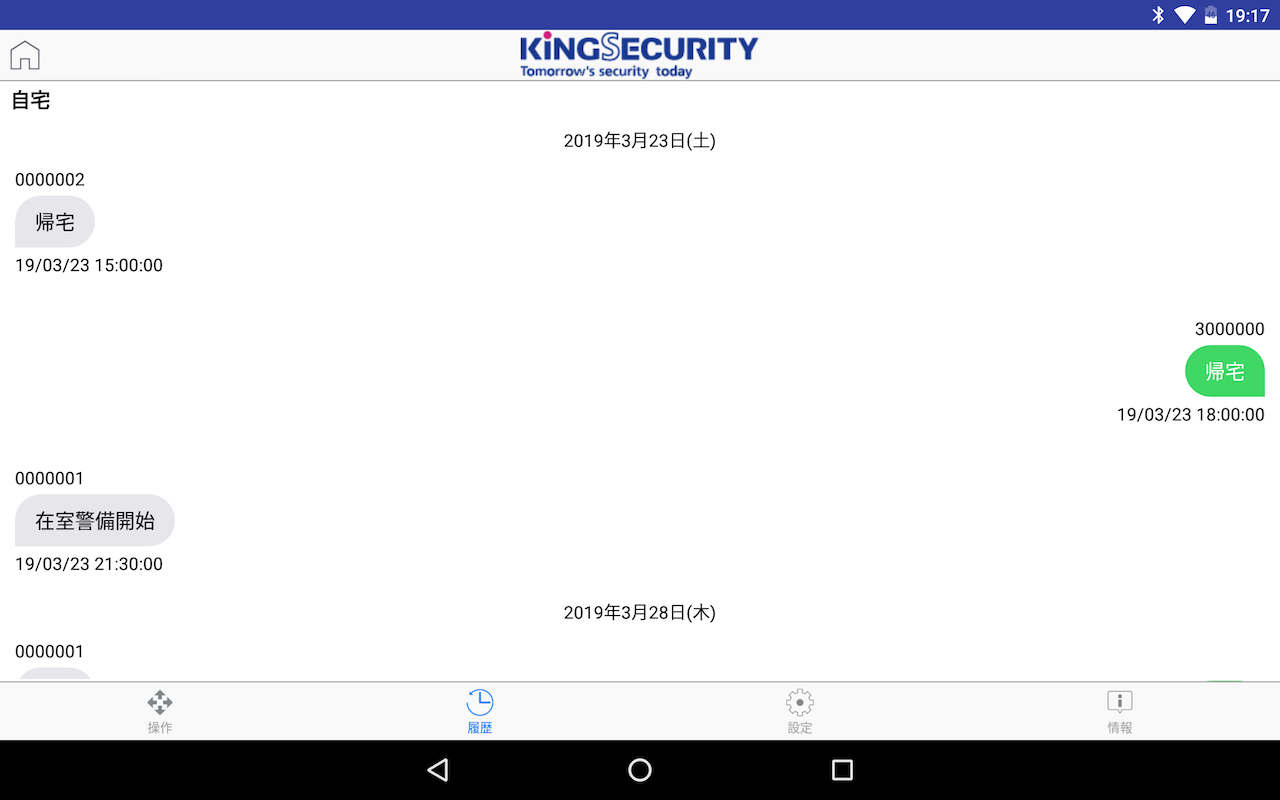 警備状態の表示は、アプリ起動時、アプリ操作時、更新ボタン操作時に最新の状態に更新されます。