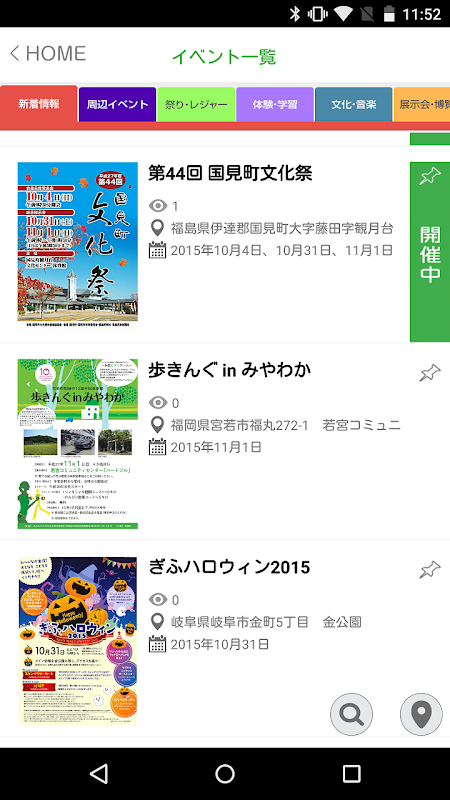 ・まつり・スポーツ・体験・学習などのカテゴリから検索