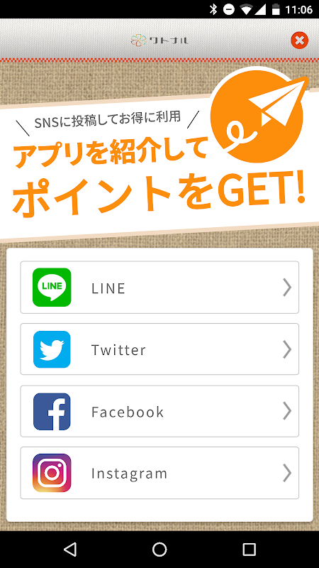 ワトナルのアプリをSNSを通じてお友達に紹介する事ができます。