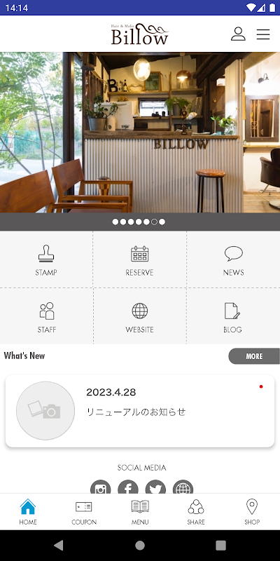 Über 丸亀・高松の美容室HairMakeBillowアプリ