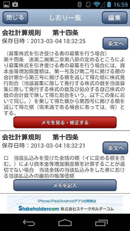 会社法・会社法施行規則・会社計算規則の会社法関係法令の全条文を収録した法律辞典アプリです。