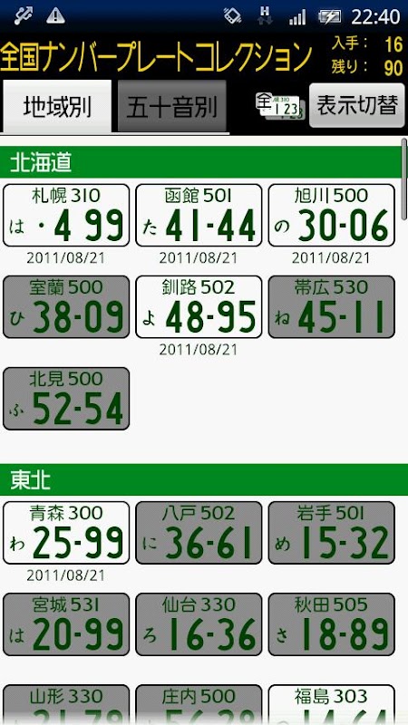 「全国ナンバープレートコレクション」は、ナンバープレートの地名を収集するAndroidアプリです。