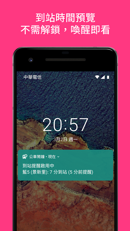已啟用到站提醒的路線(站牌),可以不用解鎖螢幕就查閱時間。