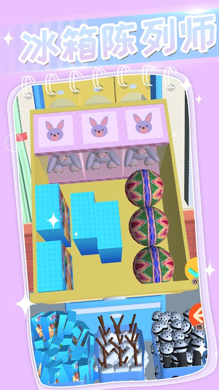 Komm schon! Fange an, die Kühlschrankregale mit verschiedenen Lebensmitteln und Getränken zu füllen und versuche, sie alle unterzubringen.