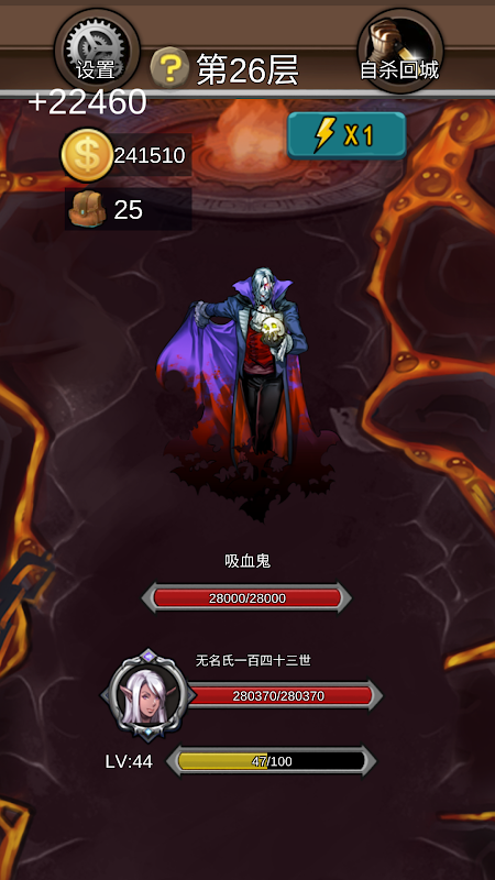 这是一个刷刷刷类型的放置爬塔游戏,只需要进入关卡,勇者会自动进行攻击。你只需收拾一下背包,给勇者换一身装备就可以让他再次上路了。